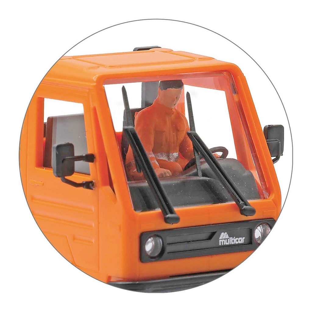 Busch Neuheit 2026. Hubert sitzt in seinem Multicar. Er hat schon alles abgeladen und fährt mit dem leeren Wagen noch einmal zum Bauhof, um weitere Absperrungen zu holen.