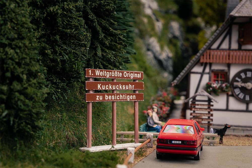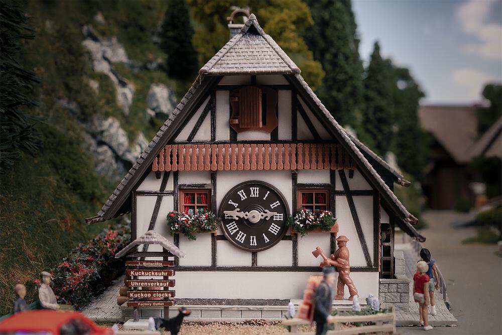 Anlässlich unseres 80-jährigen Jubiläums rückt unsere Heimat – der Schwarzwald – in den Fokus unserer Modellwelt. Was uns seit jeher inspiriert, wird für ein Jahr besonders sichtbar: Die Kunst des Modellbaus, verwurzelt im Schwarzwald! Dieses detailreiche Modell wurde nach dem Vorbild der weltgrößten Kuckucksuhr im Schwarzwald gestaltet. Das Original entstand im Schonacher Untertal, wo Uhrmachermeister Josef Dold und seine Familie in zweijähriger Arbeit ein einzigartiges Werk schufen – komplett aus Holz und mit einem Uhrwerk von gigantischen Ausmaßen. Das Modell fängt den besonderen Charme dieser außergewöhnlichen Sehenswürdigkeit ein: liebevoll gestaltete Details, Handwerkskunst und eine typische Schwarzwälder Tradition. Inklusive einer Figur in Schwarzwaldtracht und Bollenhut, die dem Ganzen zusätzlichen Charakter verleiht. Ein Stück Schwarzwald für Zuhause – inspiriert von der größten Kuckucksuhr der Welt.