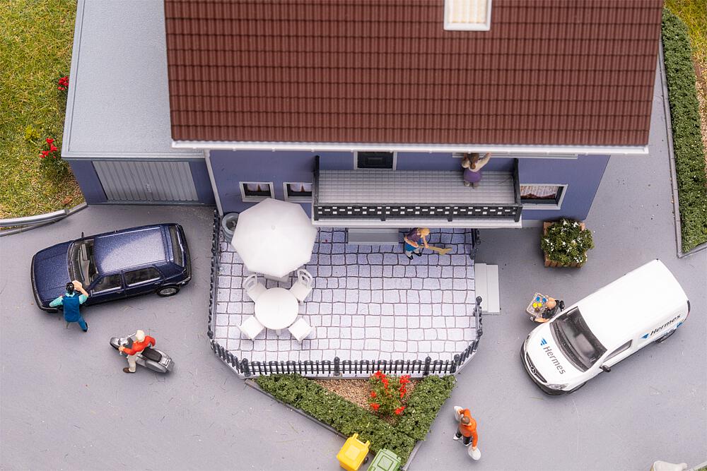 H0 Zweifamilienhaus, Epoche IV, Garage: 67 x 41 x 37 mm, Wohnhaus: 155 x 125 x 145 mm.