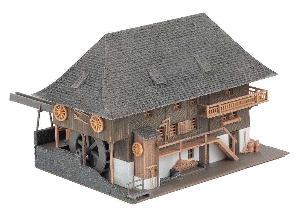 Anlässlich unseres 80-jährigen Jubiläums rückt unsere Heimat – der Schwarzwald – in den Fokus unserer Modellwelt. Was uns seit jeher inspiriert, wird für ein Jahr besonders sichtbar: Die Kunst des Modellbaus, verwurzelt im Schwarzwald! Ein echtes Original! Diese Schwarzwälder Getreidemühle liegt idyllisch im Jostal bei Titisee-Neustadt. Erbaut wurde sie 1772 und ist bis heute im Familienbesitz. Die Mühle wird oberschlägig über ein Wasserrad angetrieben, verfügt über ein Mahlwerk mit Steingang und alle Voraussetzungen, um Öl zu pressen oder Korn zu mahlen. Neben der Mühle bietet das Gebäude einen zusätzlichen Wohnteil. Eine Figur in traditioneller Tracht erweckt die Mühle zum Leben. Das Modell lässt sich zudem mit dem Bastelmotor (Art. 180629) antreiben, dieser liegt jedoch nicht bei.