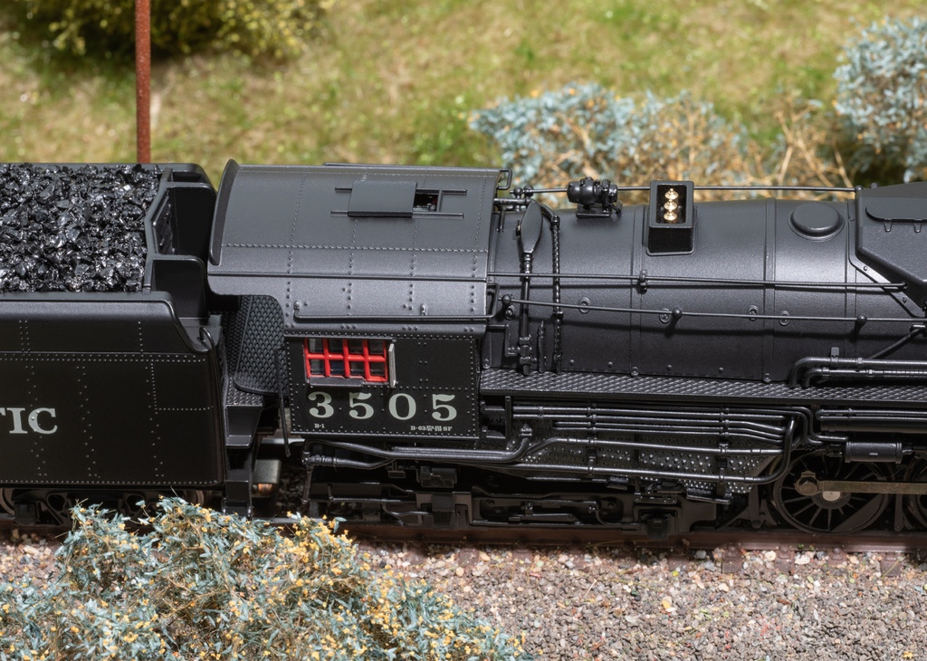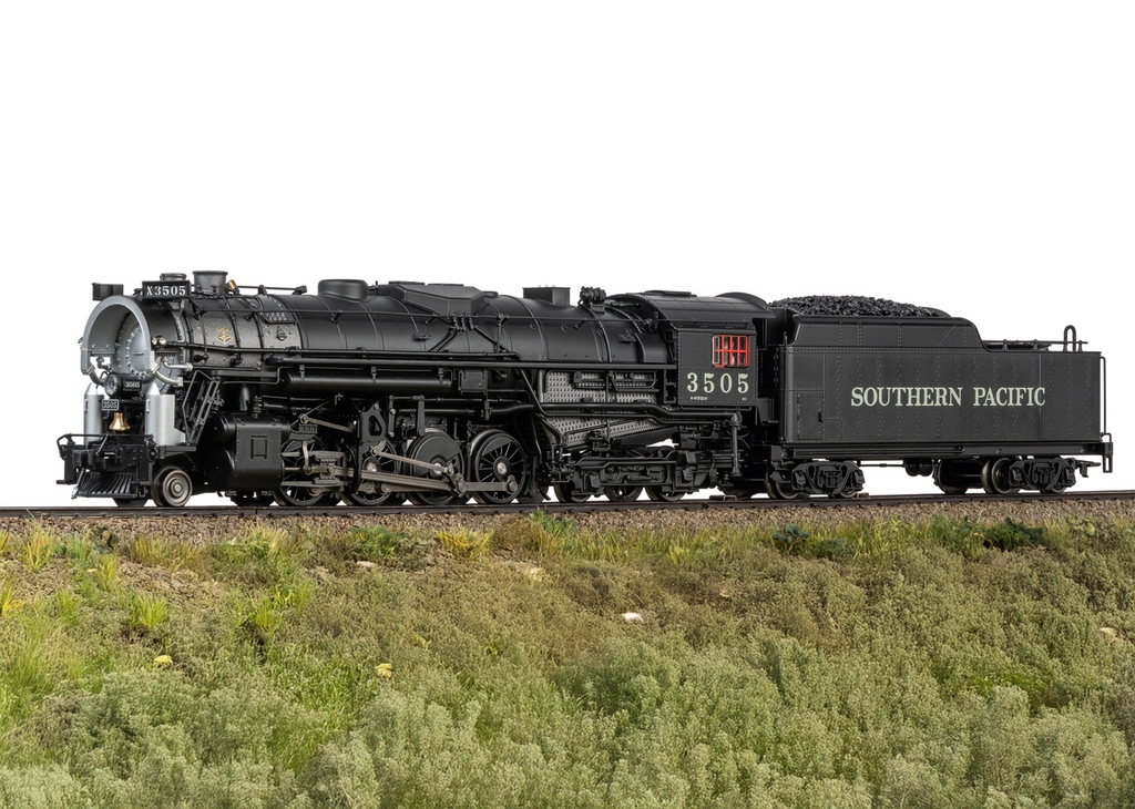 Dampflokomotive mit der Achsfolge 2-8-4 Berkshire der Southern Pacific. Tiefschwarze Grundfarbgebung. Betriebsnummer 3505. Betriebszustand zwischen 1945 und 1950. Eine von 25 gebauten Lokomotiven mit dem markanten Coffin-Vorwärmer.