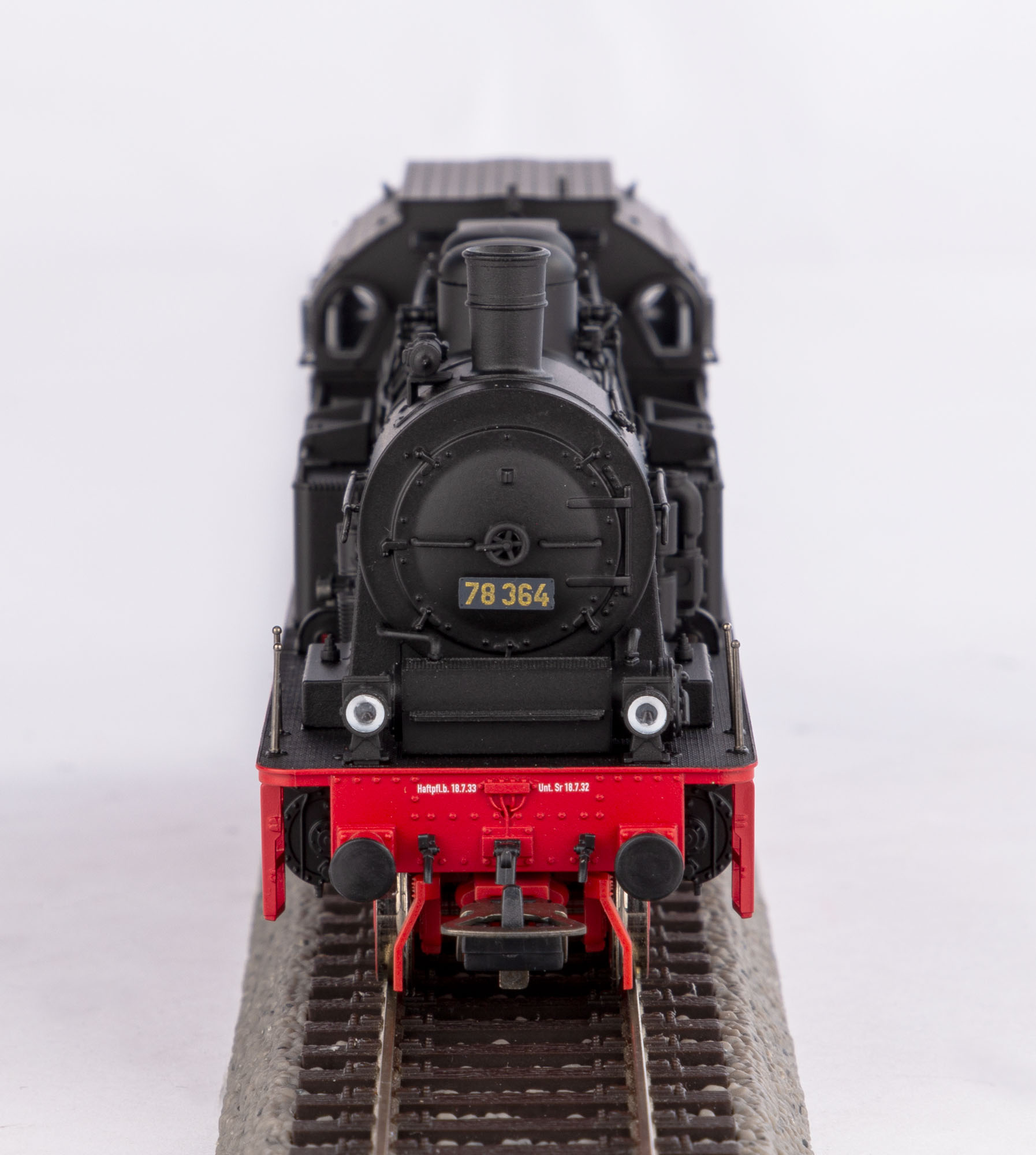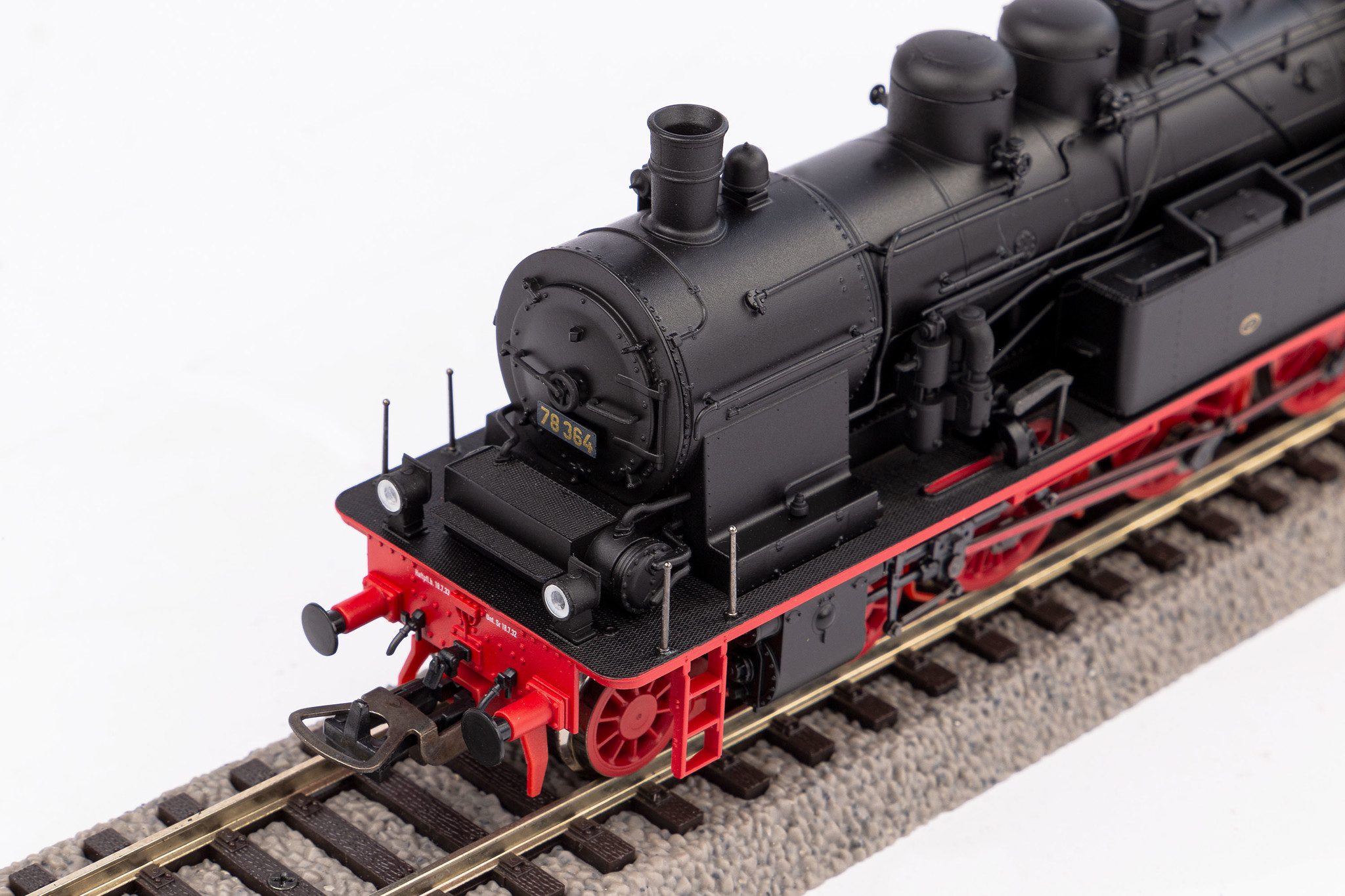 Das Modell der BR 78 der DRG aus Epoche II überzeugt durch ihren großen Detailreichtum. Nahezu alle Leitungen wurden freistehend ausgeführt und die einzelnen Elemente, wie Führerhaus, Wasserkästen und Rauchkammer, zieren feinste Nachbildungen der Nietköpfe. Die integrierte PluX22-Schnittstelle ermöglicht eine schnelle Nachrüstung mit einem Digitaldecoder. Die Dampflok ist darüber hinaus für die Nachrüstung mit Sound vorbereitet.