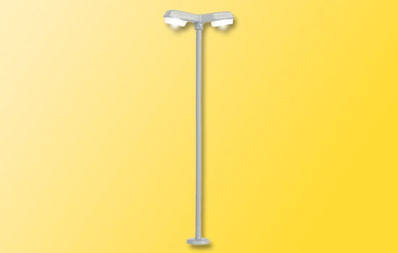 Moderne Straßenleuchten der Epochen IV – VI. Wartungsfrei dank LED-Beleuchtung. Vorbildgetreuer Messingmast mit Patentsteckfuß für eine besonders einfache Montage. Günstiges Set mit 6 Leuchten Art. 6497 zum Preis von 5. Höhe: 5,5 cm.